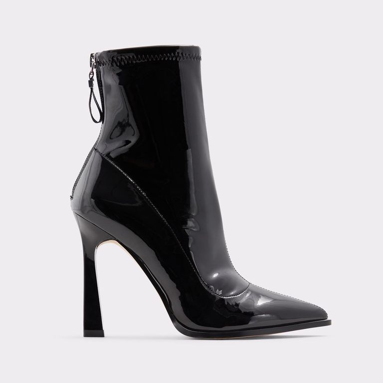 Inject a little edge into your ankle boot with a mini heel and a patent vinyl finish.